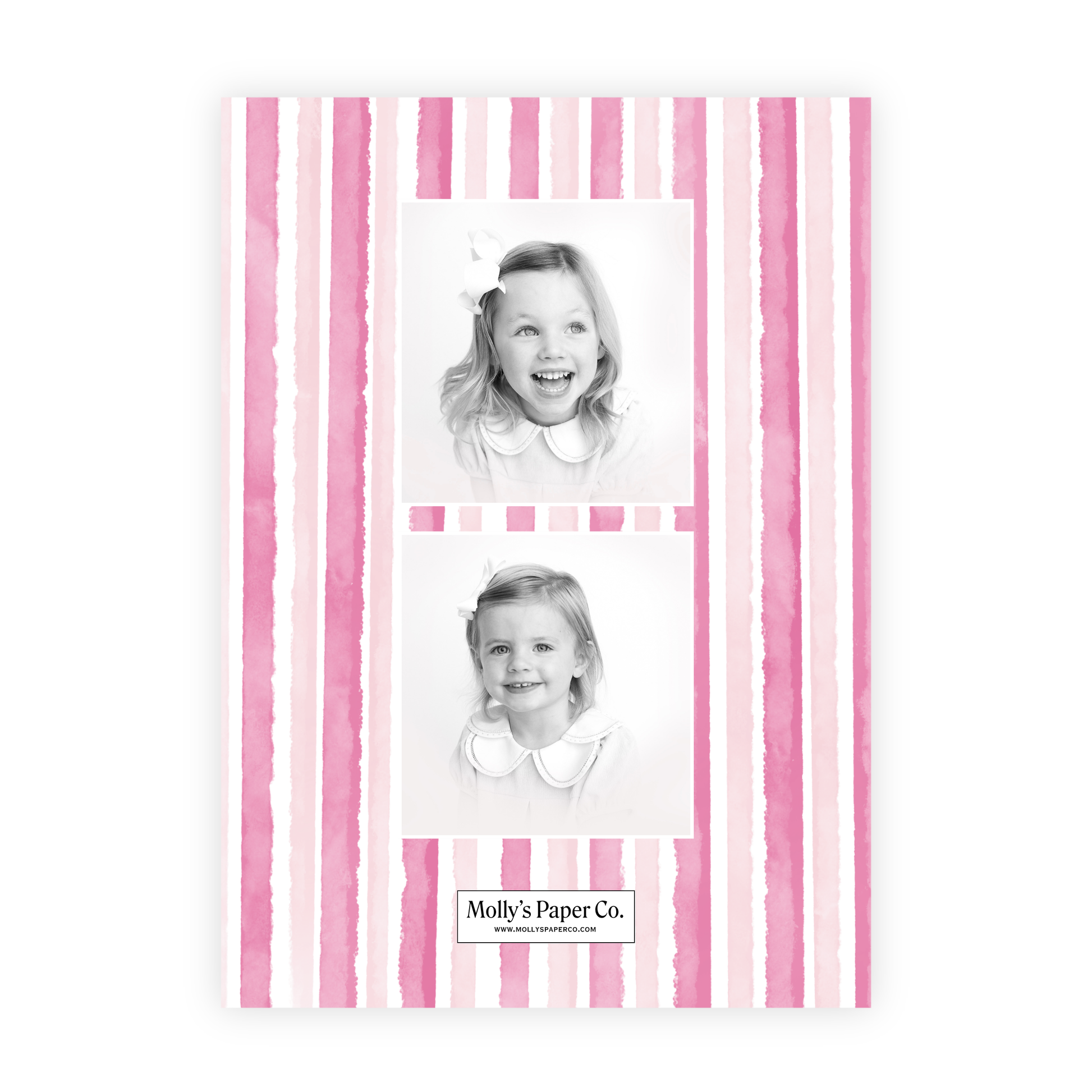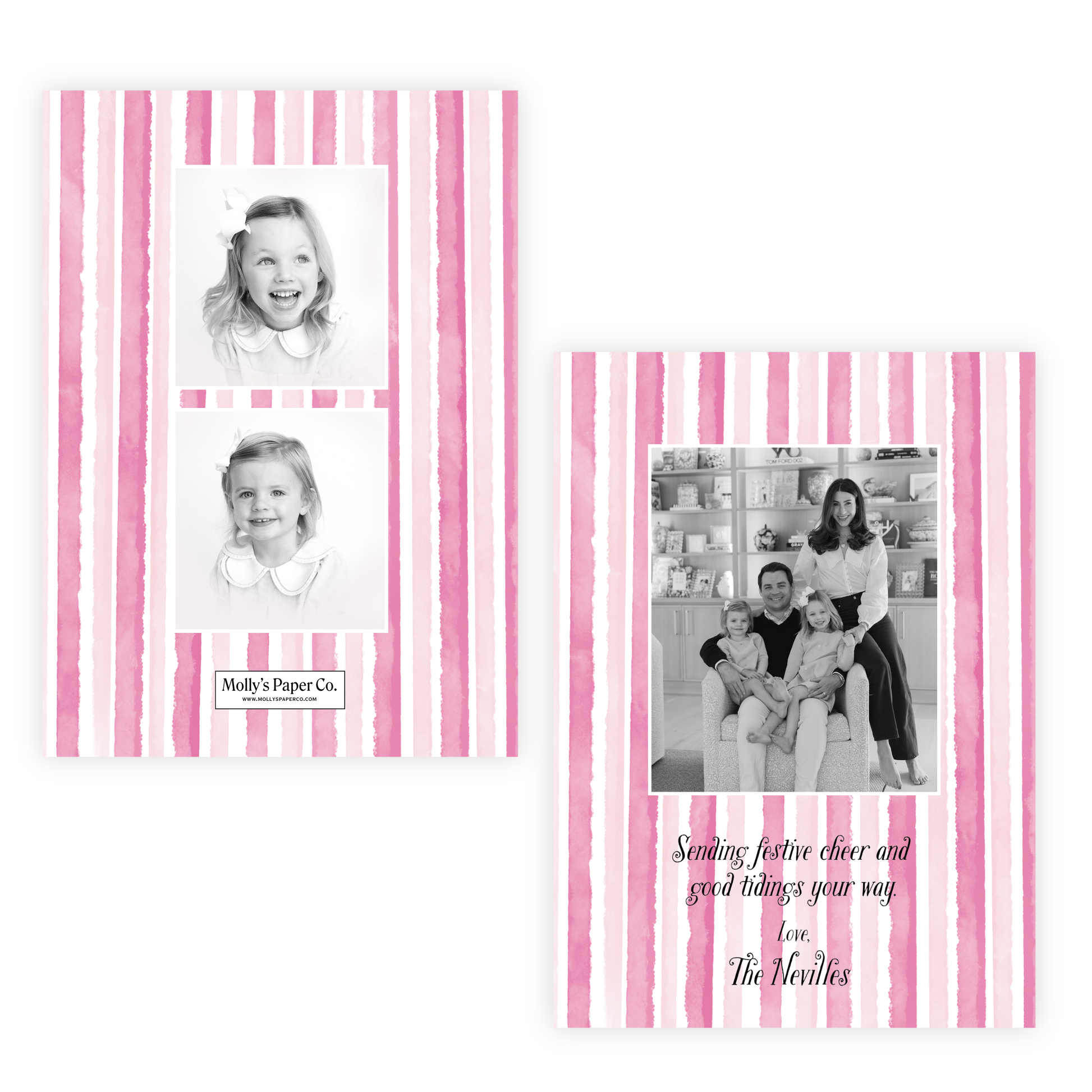 The Pink Stripes Holiday Photo Card pairs classic watercolor stripes with a modern layout — perfect for showcasing your favorite family photos. With space for multiple pictures and a heartfelt message, it’s a sweet and stylish way to send festive cheer to friends and loved ones.