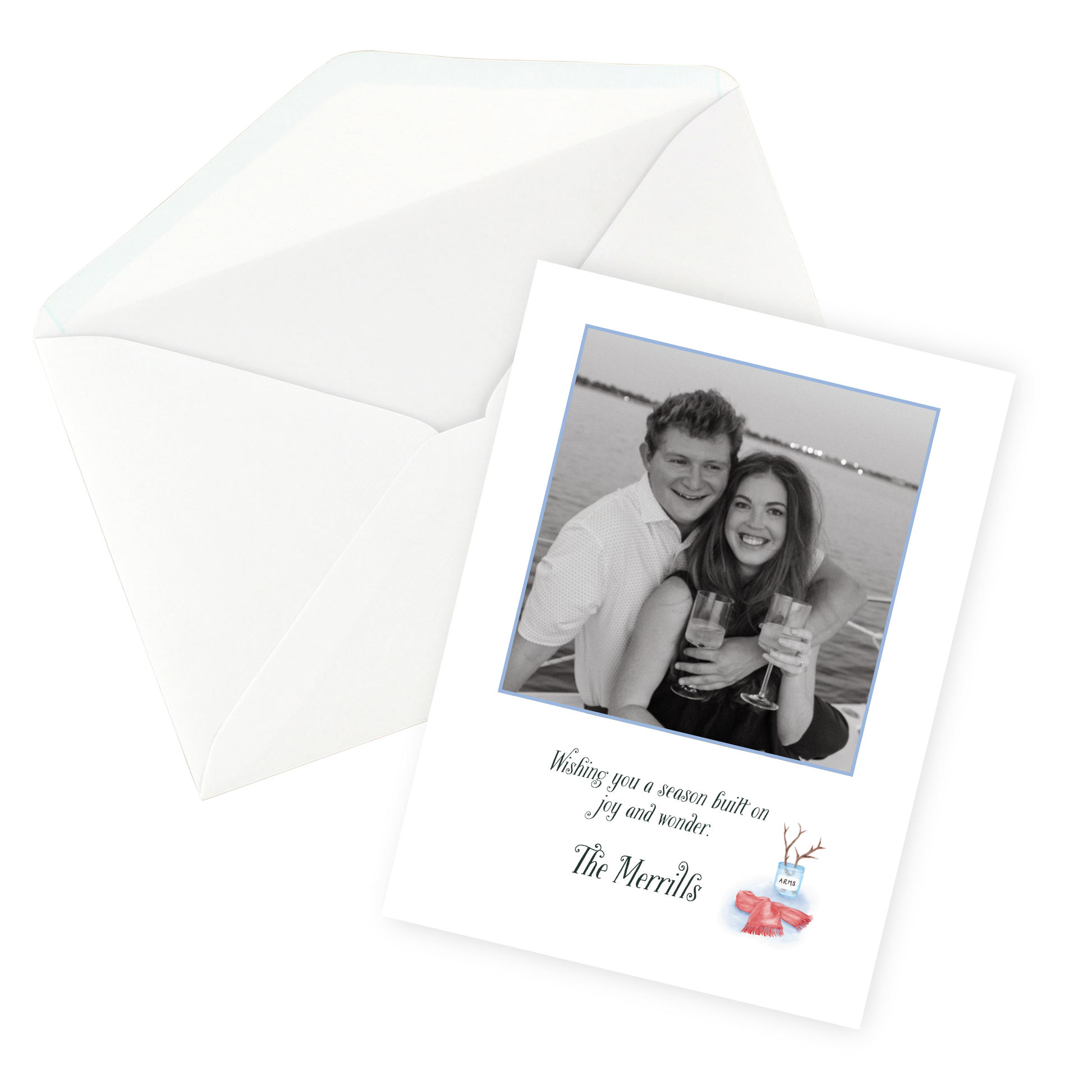 Holidays in progress... and hearts full of cheer! This playful winter design features a charming snowman mid-construction — complete with scattered tools, cozy mittens, and a top hat ready to top it all off. Paired with space for your favorite family photo, it’s the perfect blend of whimsy and warmth to share your holiday joy in style.